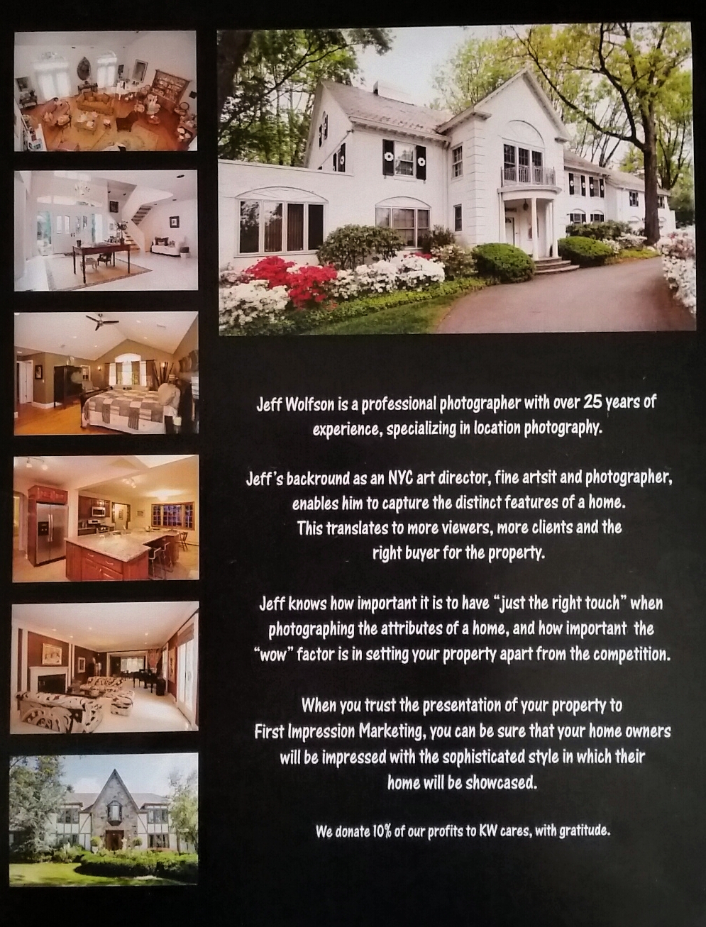 Jeff Wolfson, an agent at our Livingston office is offering discounted photography to the KW family. Please see attached. Call Jeff for quotes. His product and rates can’t be beat.