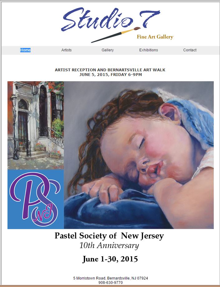 The Pastel Society of NJ’s artists’ reception at Studio 7 in Bernardsville, NJ on June 5th was a big success featuring the members’ pastel paintings. Awards were announced at the reception. My painting, “Road to Cartaret” received a Merit award and came in 2nd. The Best in Show award went to Beth Varkala for “Petit Fille” shown on announcement. The show runs through June 30th.